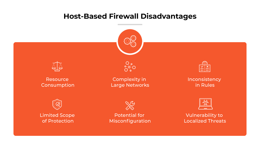 Host-based firewalls are decentralized by nature, so there is an increased risk of misconfiguration. Misconfiguration can lead to security vulnerabilities or unintended network traffic blockages.