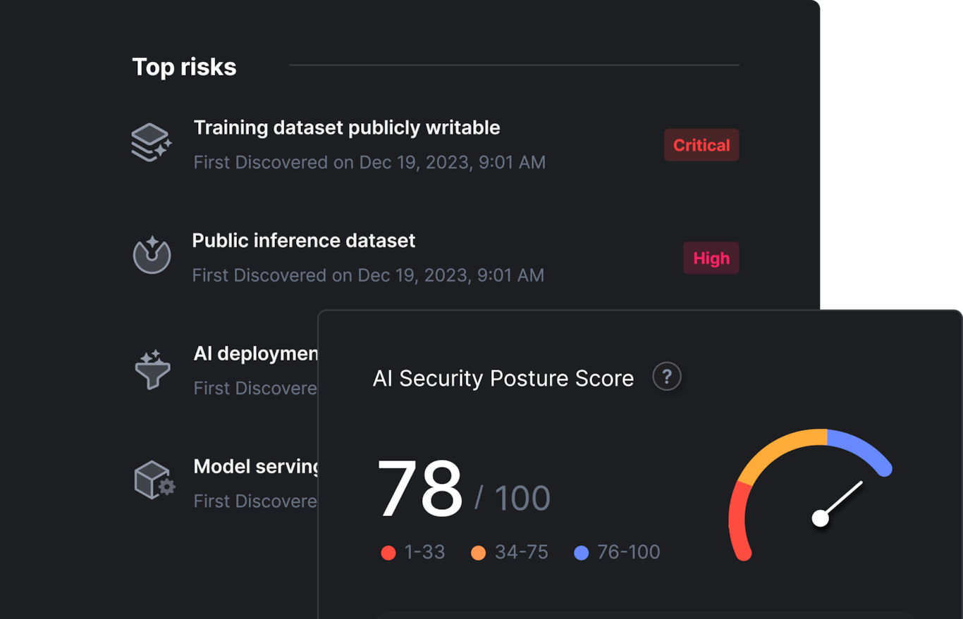 Maximize the transformative benefits of AI and large language models (LLMs) without putting your organization at risk. Prisma® Cloud AI Security Posture Management (AI-SPM) gives you visibility and control over the three critical components of your AI security — the data you use for training or inference, the integrity of your AI models and access to your deployed models.