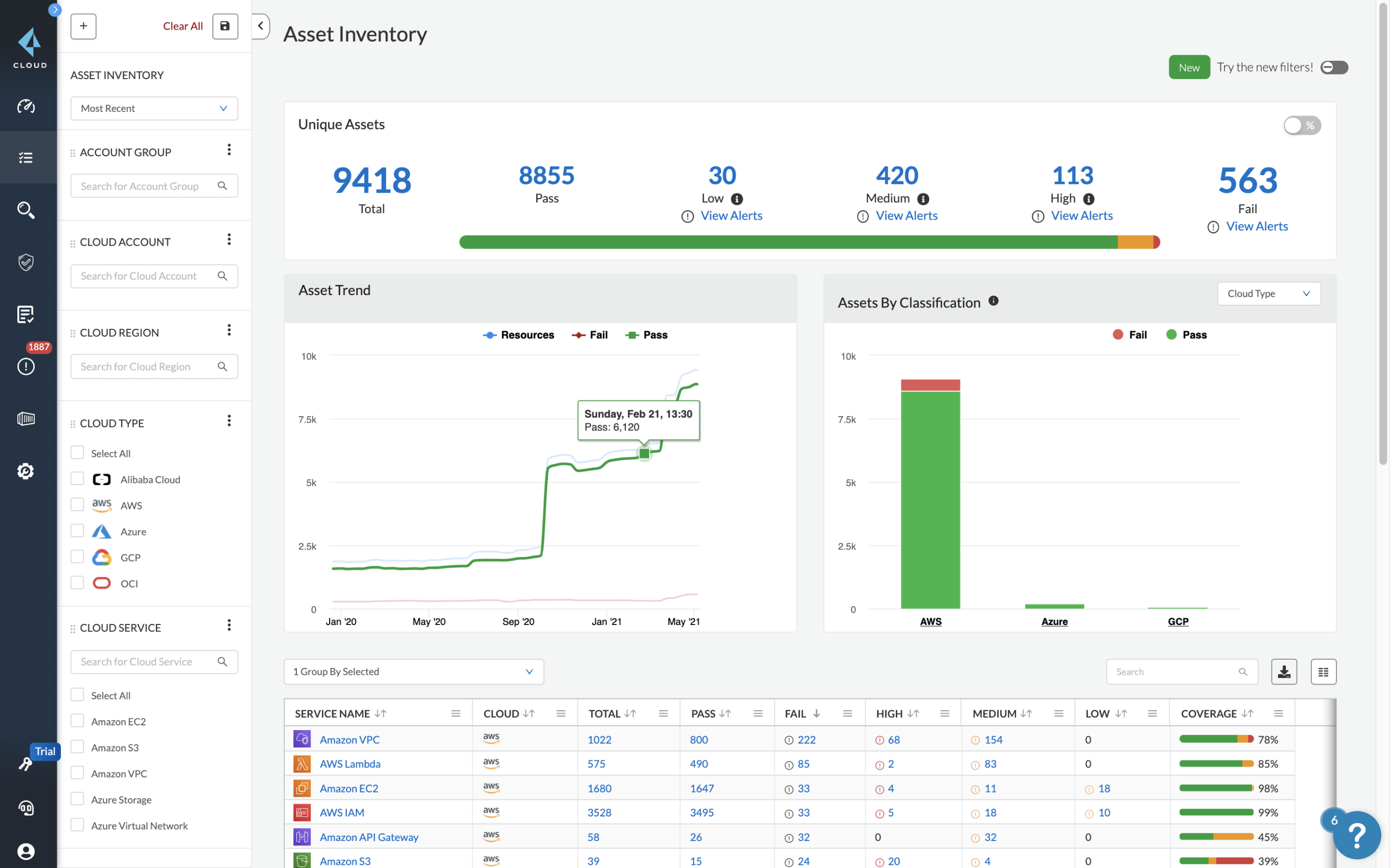 Get visibility into more than 350 cloud-native services across the six largest cloud providers—Amazon Web Services (AWS), Microsoft Azure, Google Cloud (GCP), Oracle Cloud (OCI), Alibaba Cloud and IBM Cloud.